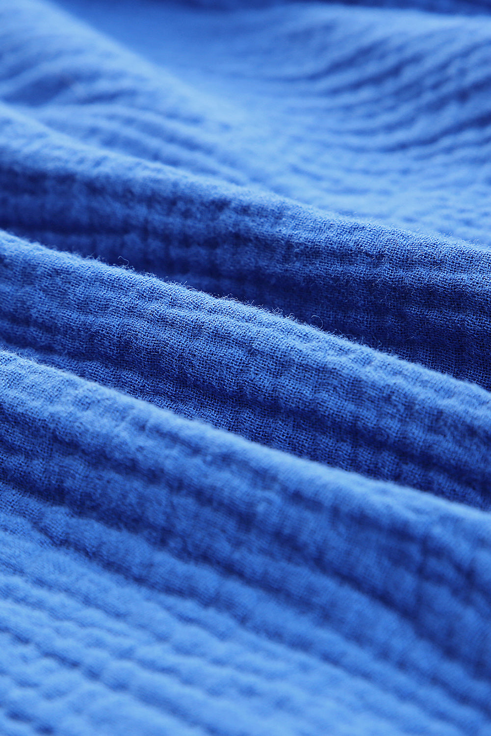 Blue Textured Knotted Straps High Waist Wide Leg Romper