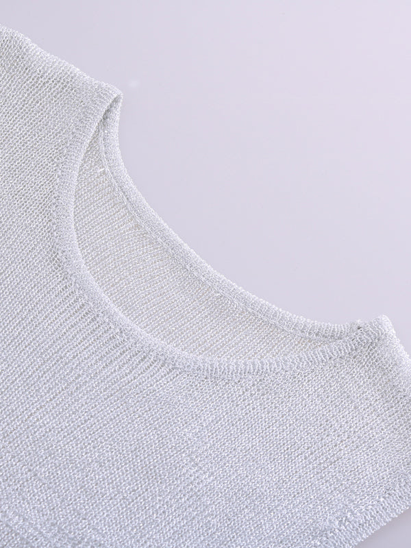 Fashion Round Neck shiny Skinny Sexy Glitter Tank Top