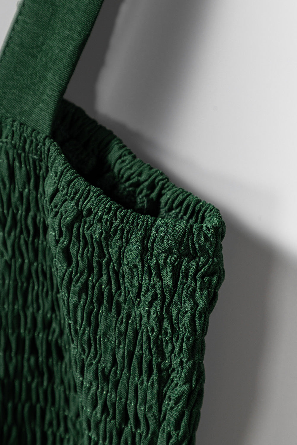 Green Smocked Sleeveless Wide Leg Jumpsuit with Pockets