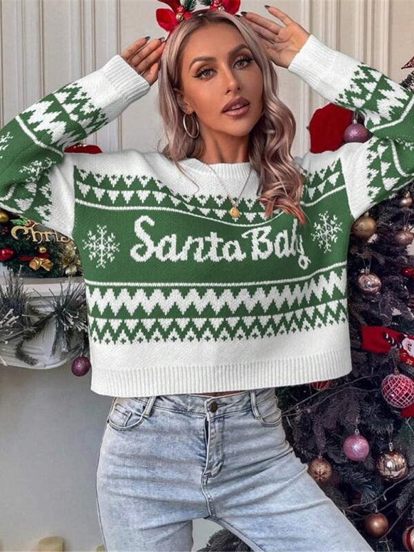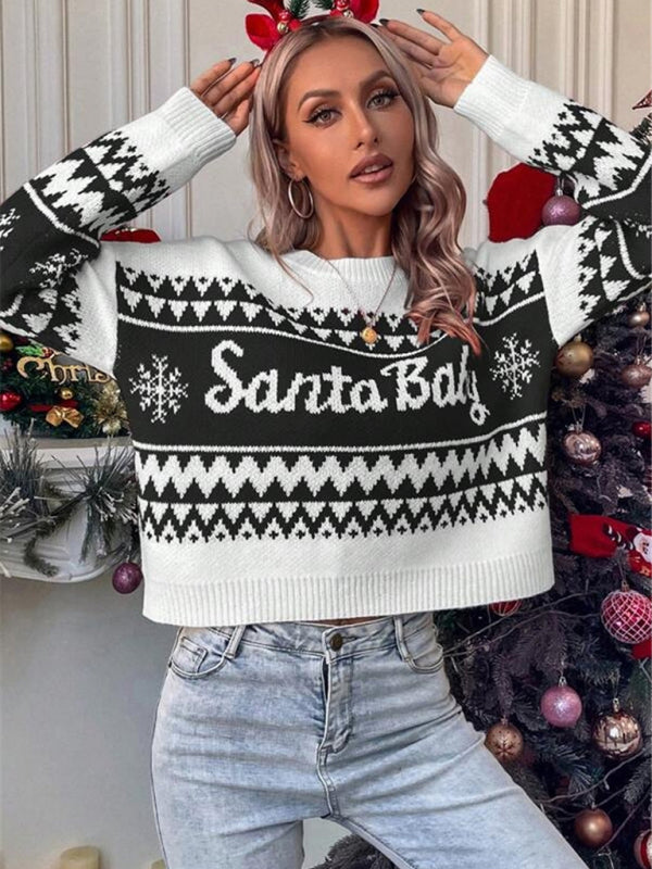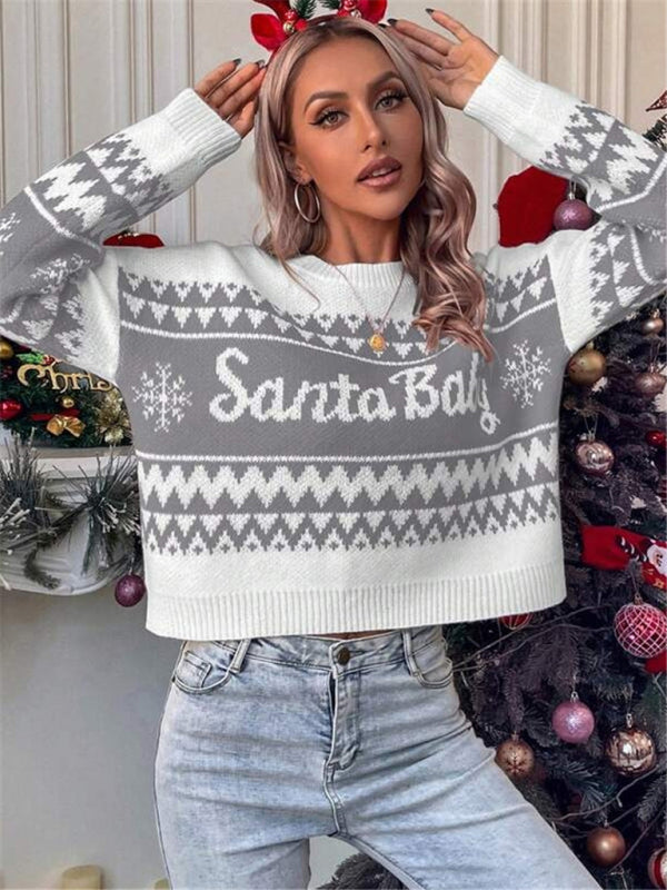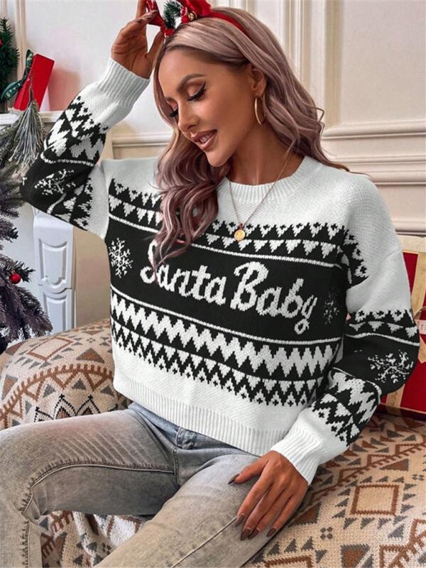 New loose, simple and versatile round neck knitted pullover Christmas sweater