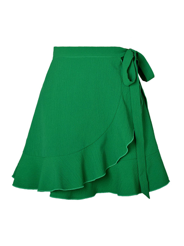 One Piece Tie Skirt High Waist Solid Ruffle Skirt