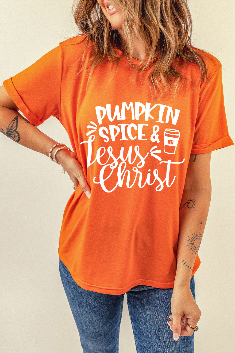 Orange PUMPKIN SPICE & Jesus Christ Graphic T-shirt