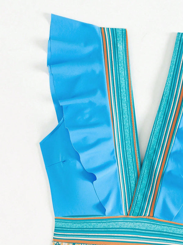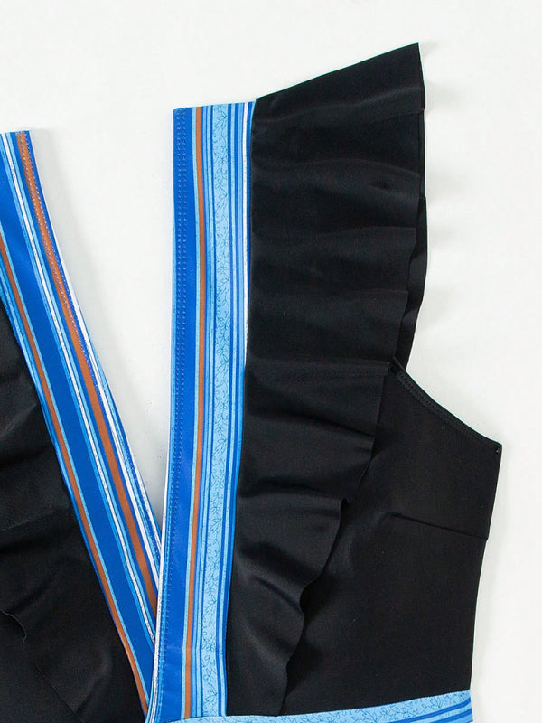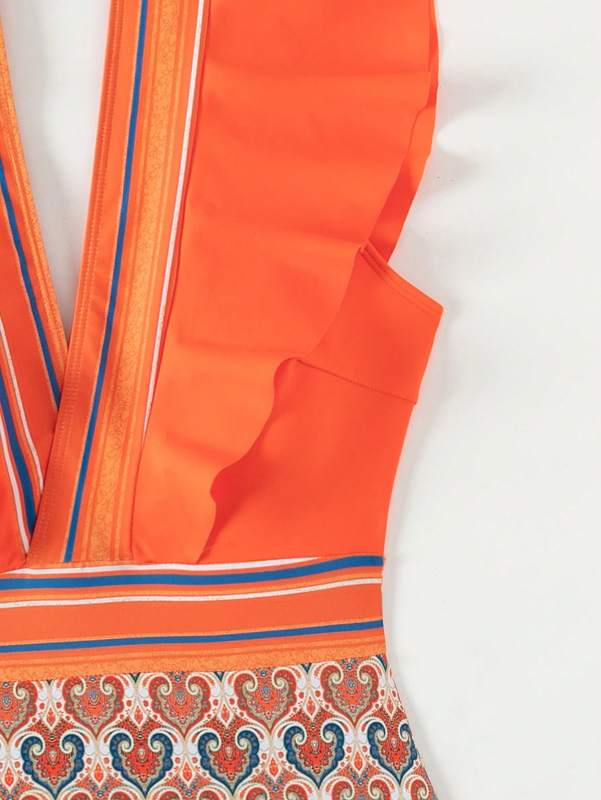 Sexy V-neck ruffled backless swimsuit