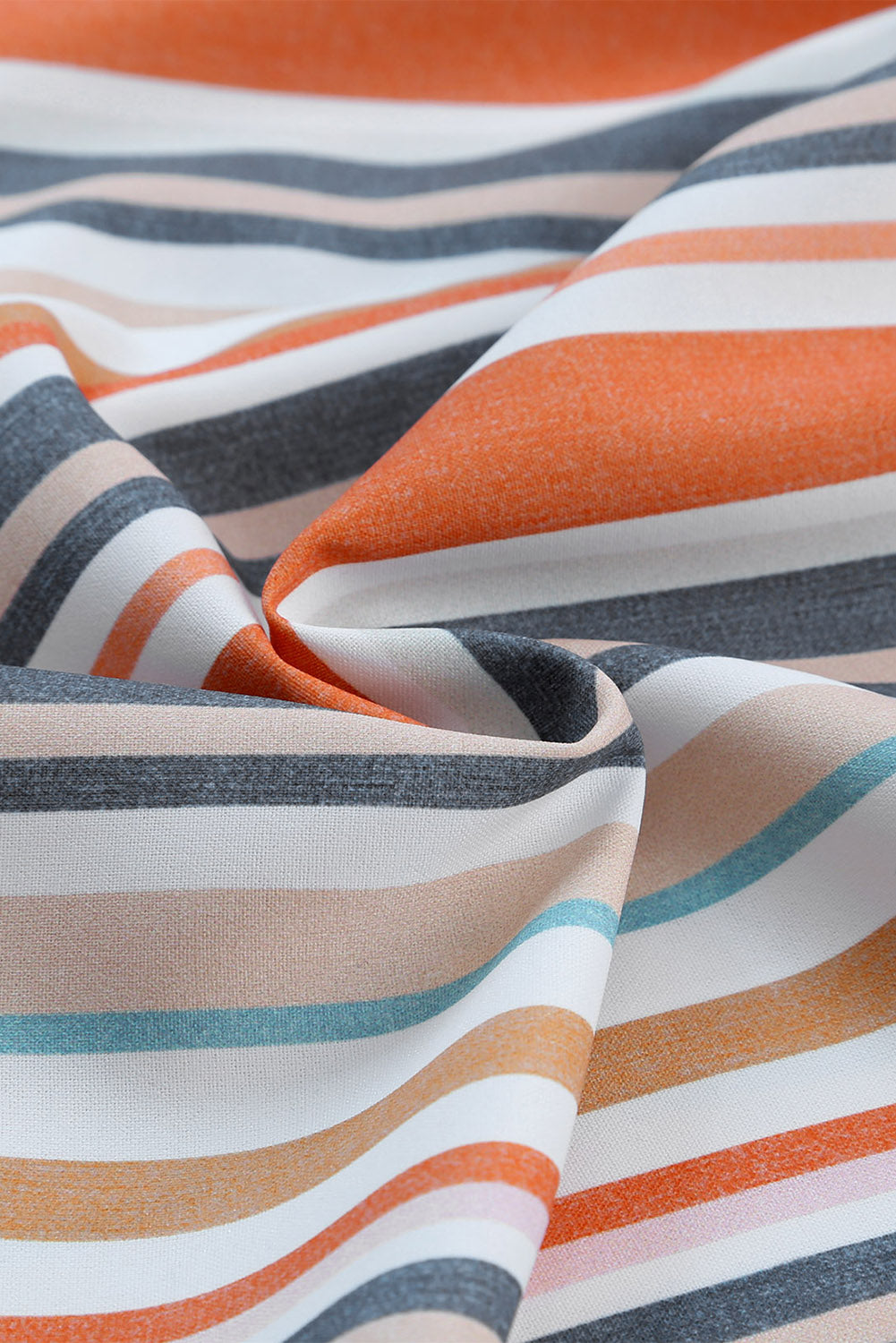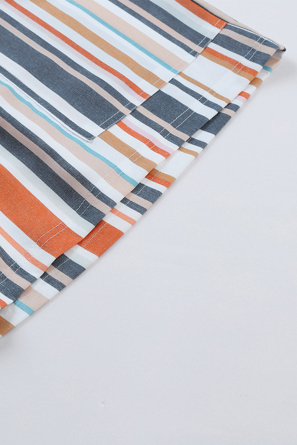 Stripe Vintage Washed Elastic Frill Waist Casual Shorts