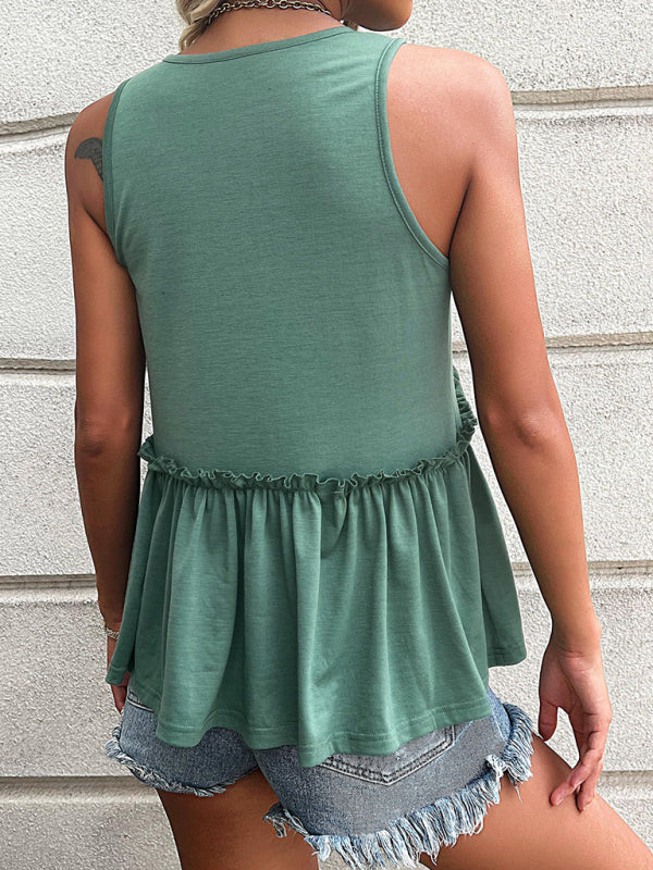 Summer casual top V-neck stitching doll shirt sleeveless vest T-shirt