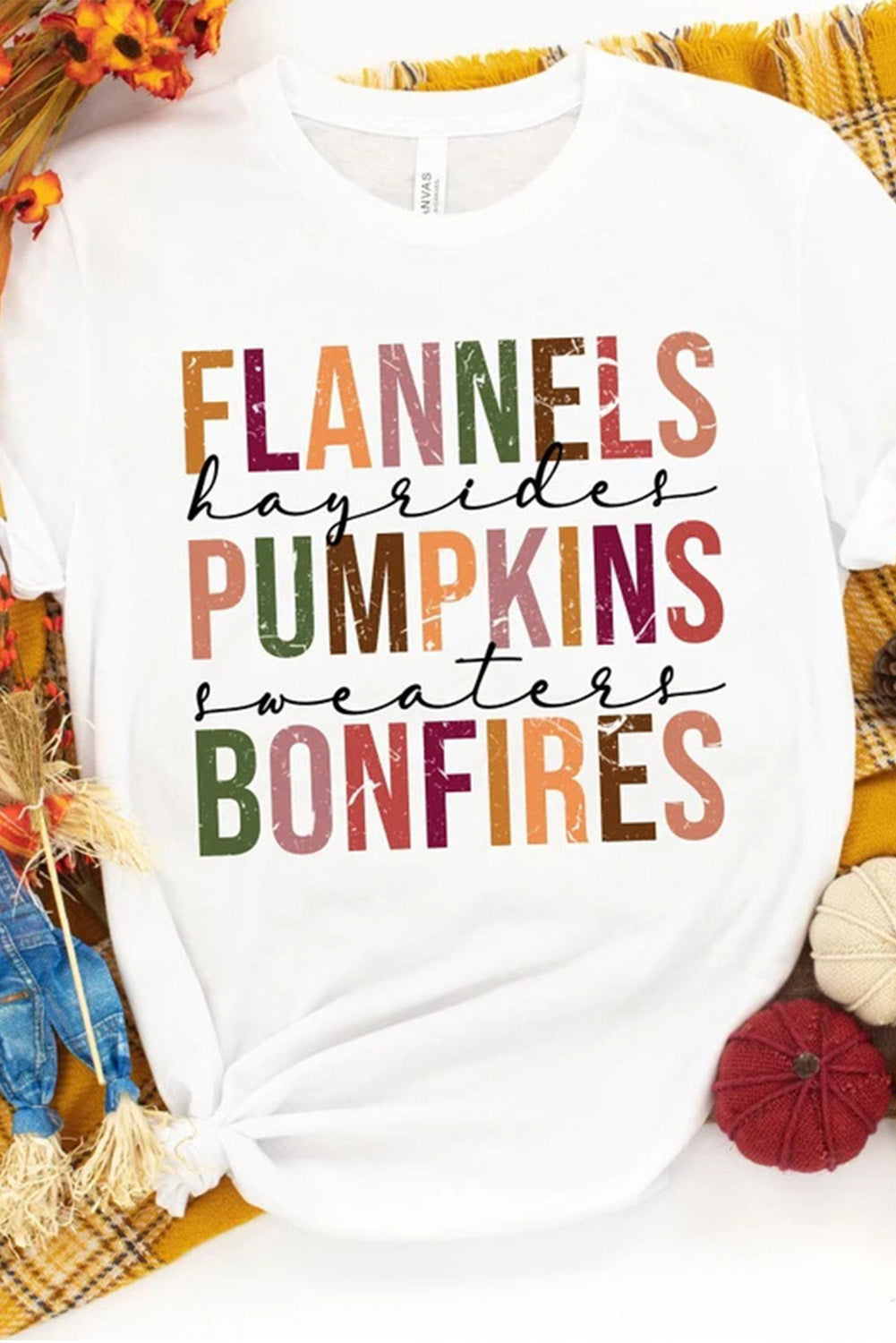 White FLANNELS PUMPKINS BONFIRES Crewneck Graphic Tee
