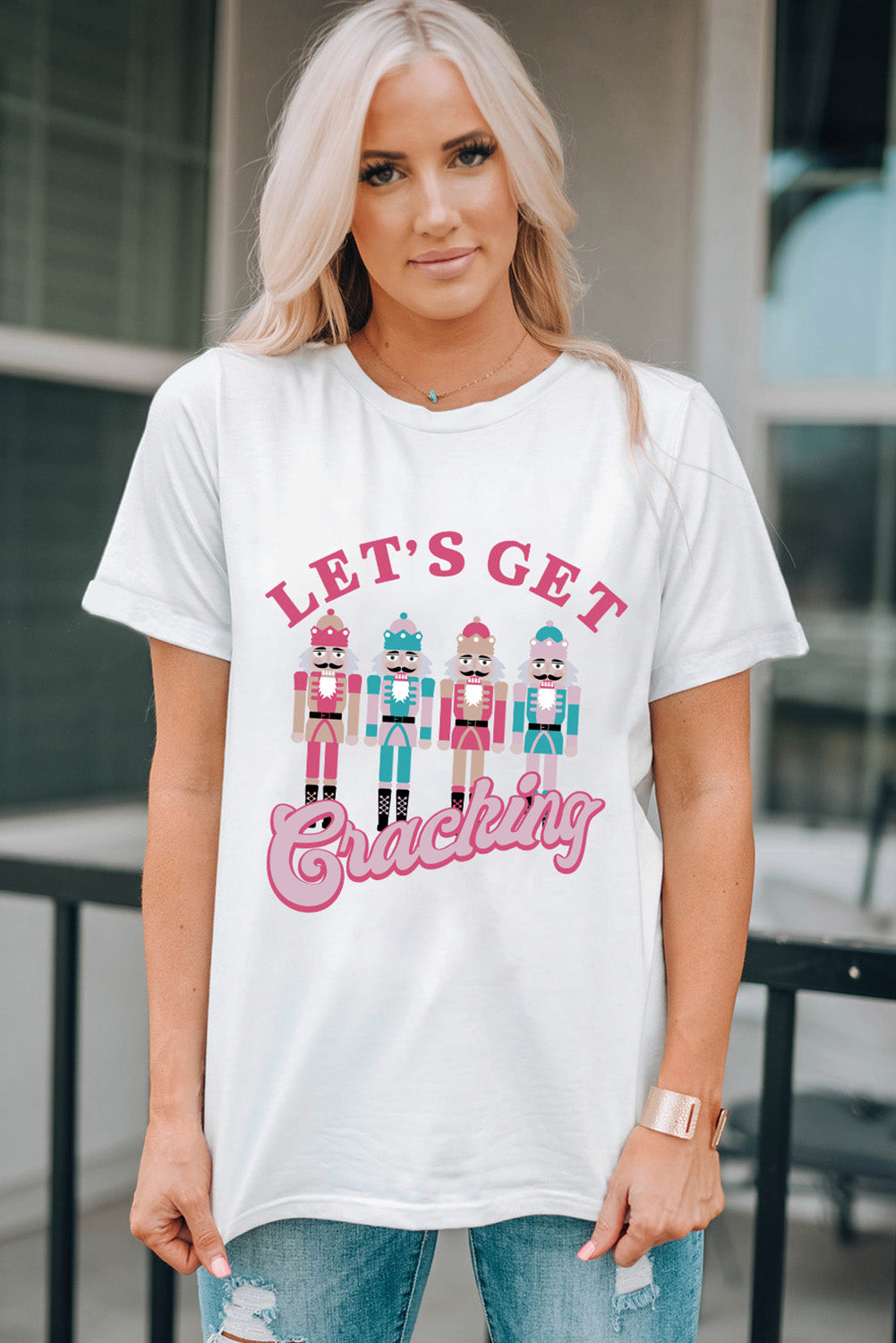 White Lets Get Cracking Print Christmas Crewneck T Shirt