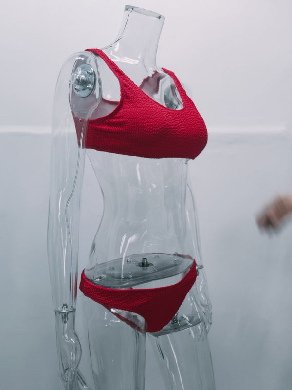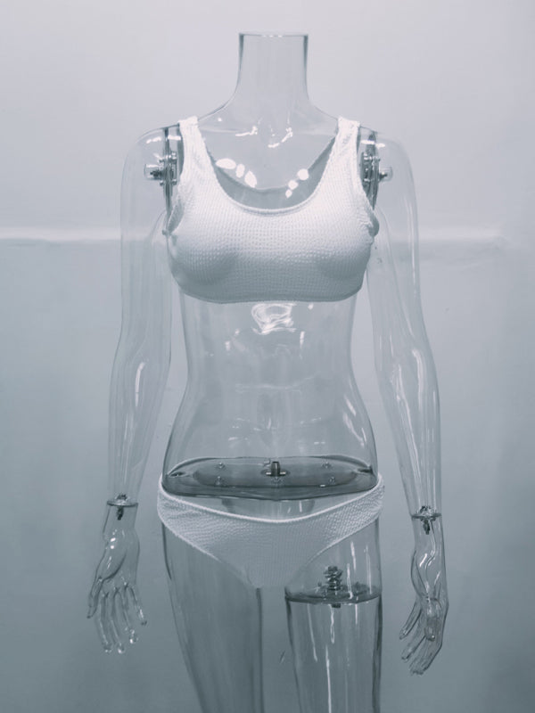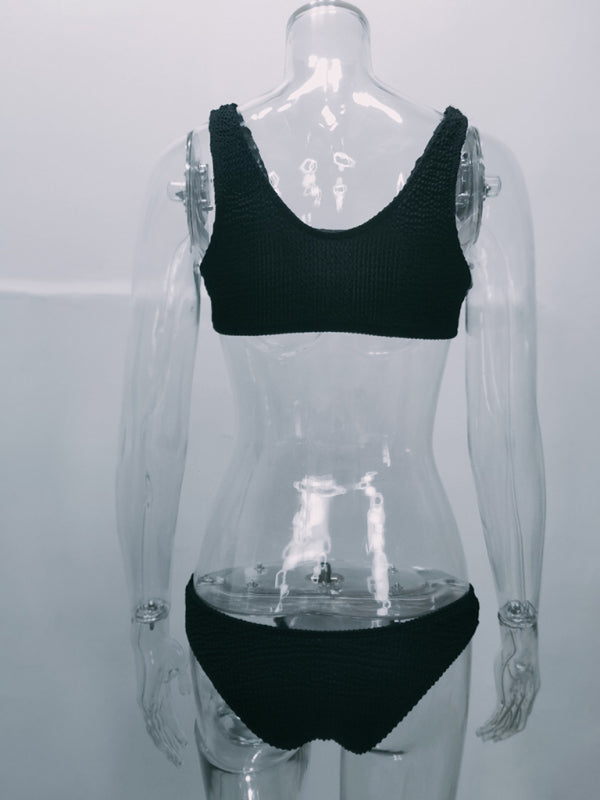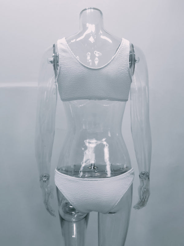 Women's new special fabric wrinkled fabric bikini macaron color split swimsuit